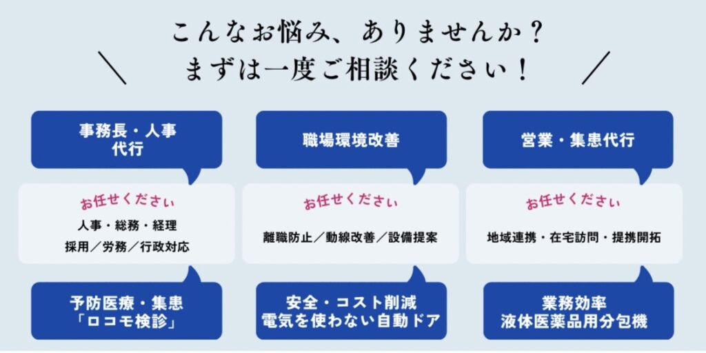医療現場の「困った」を、全部まとめて解決する。医療機関専門のパートナー