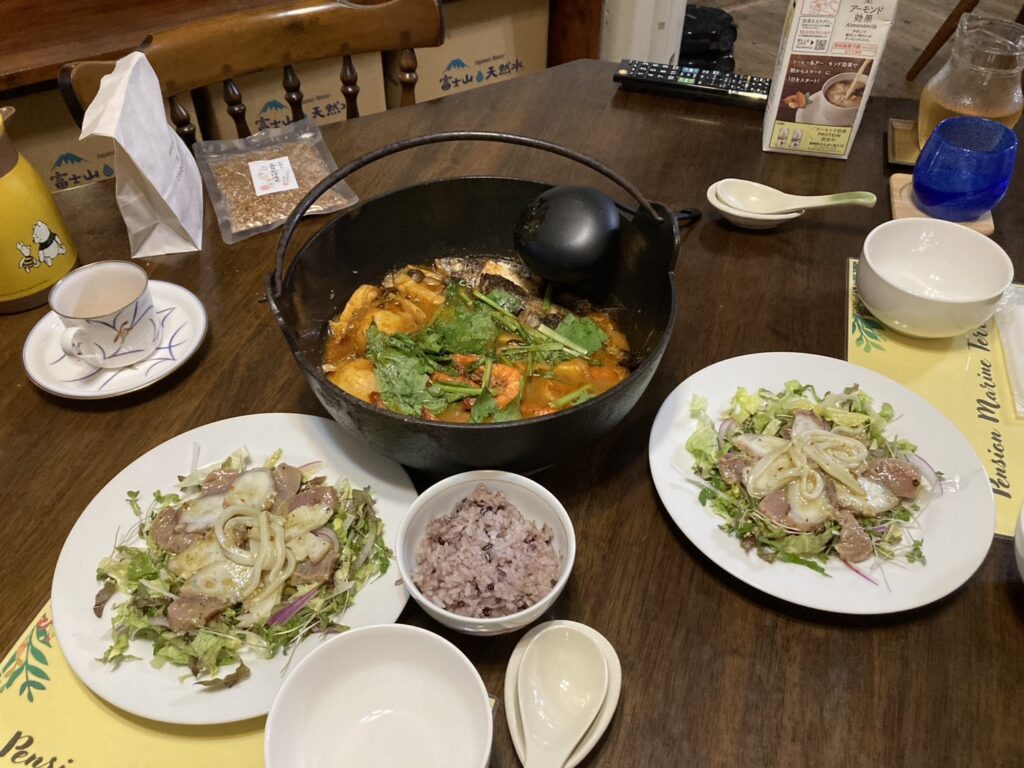 食事は、オーナーの母が地元の食材で一から手作りしています。